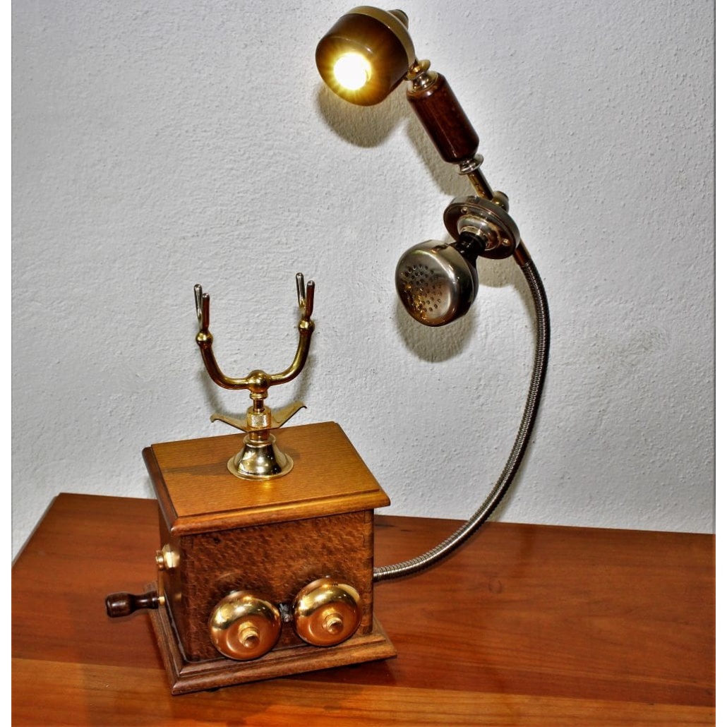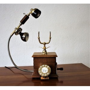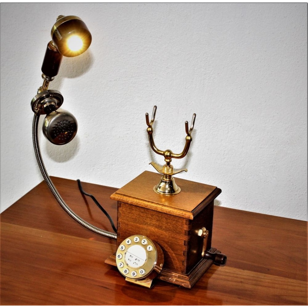 Antikes Telefon als Tischlampe umgebaut und neu elektrifiziert. Upcyclingprodukt von Artantic.